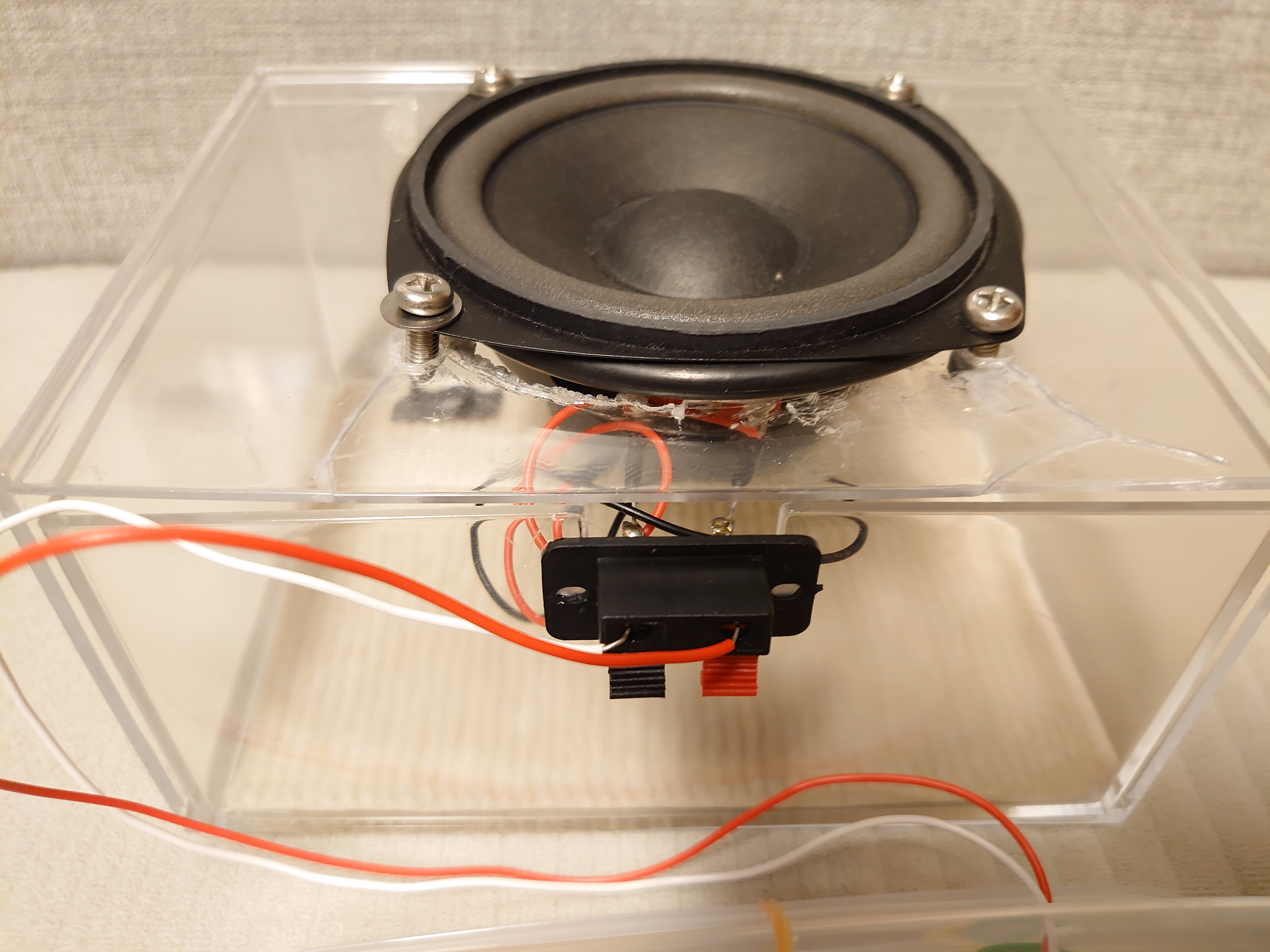 | スピーカー | 10cm 8Ω 10W | 電気の振動→空気の振動にして音を出す。 | 簡易エンクロージャで音量・低音が安定。極性(+/−)を合わせる。 |
