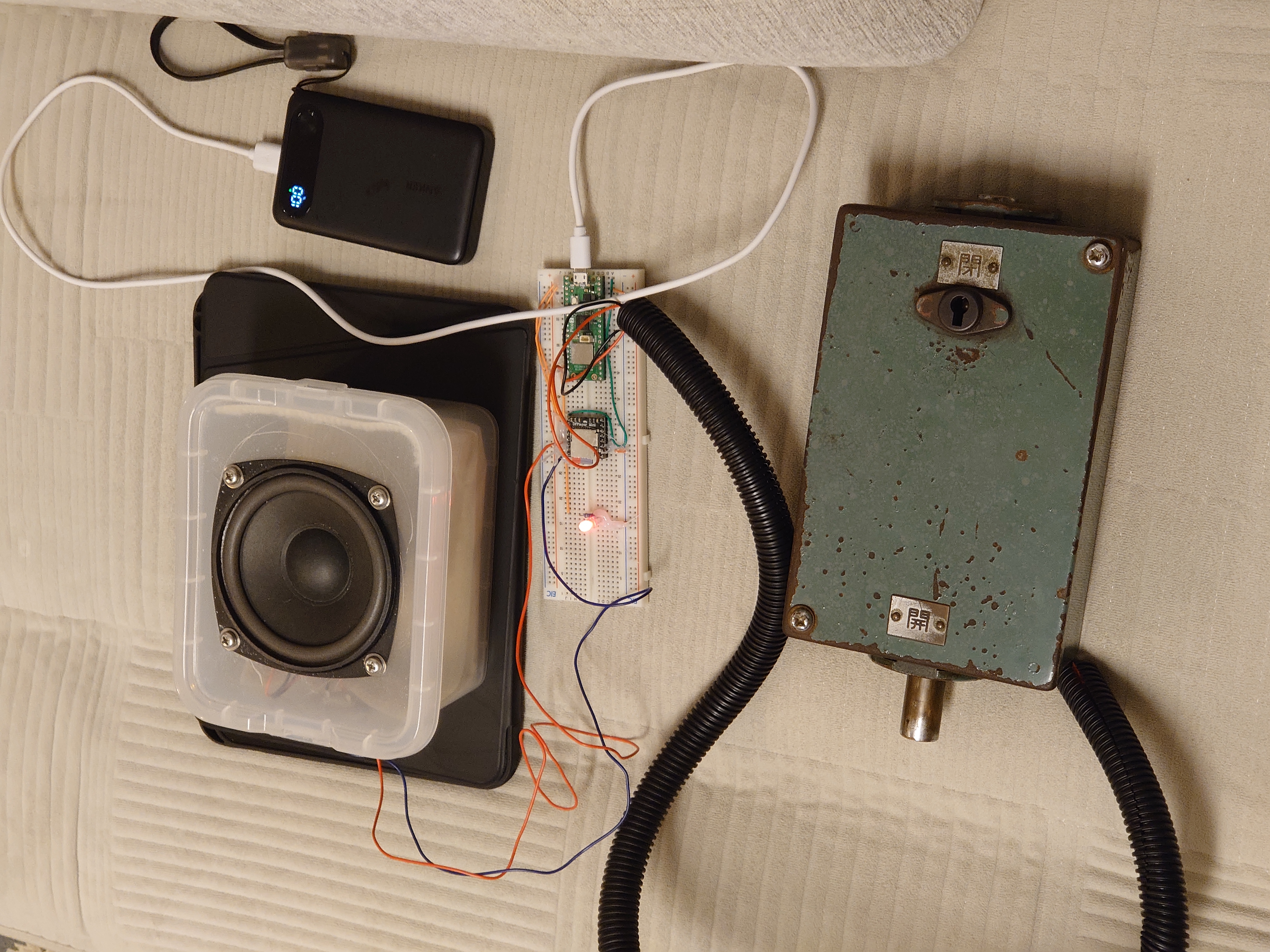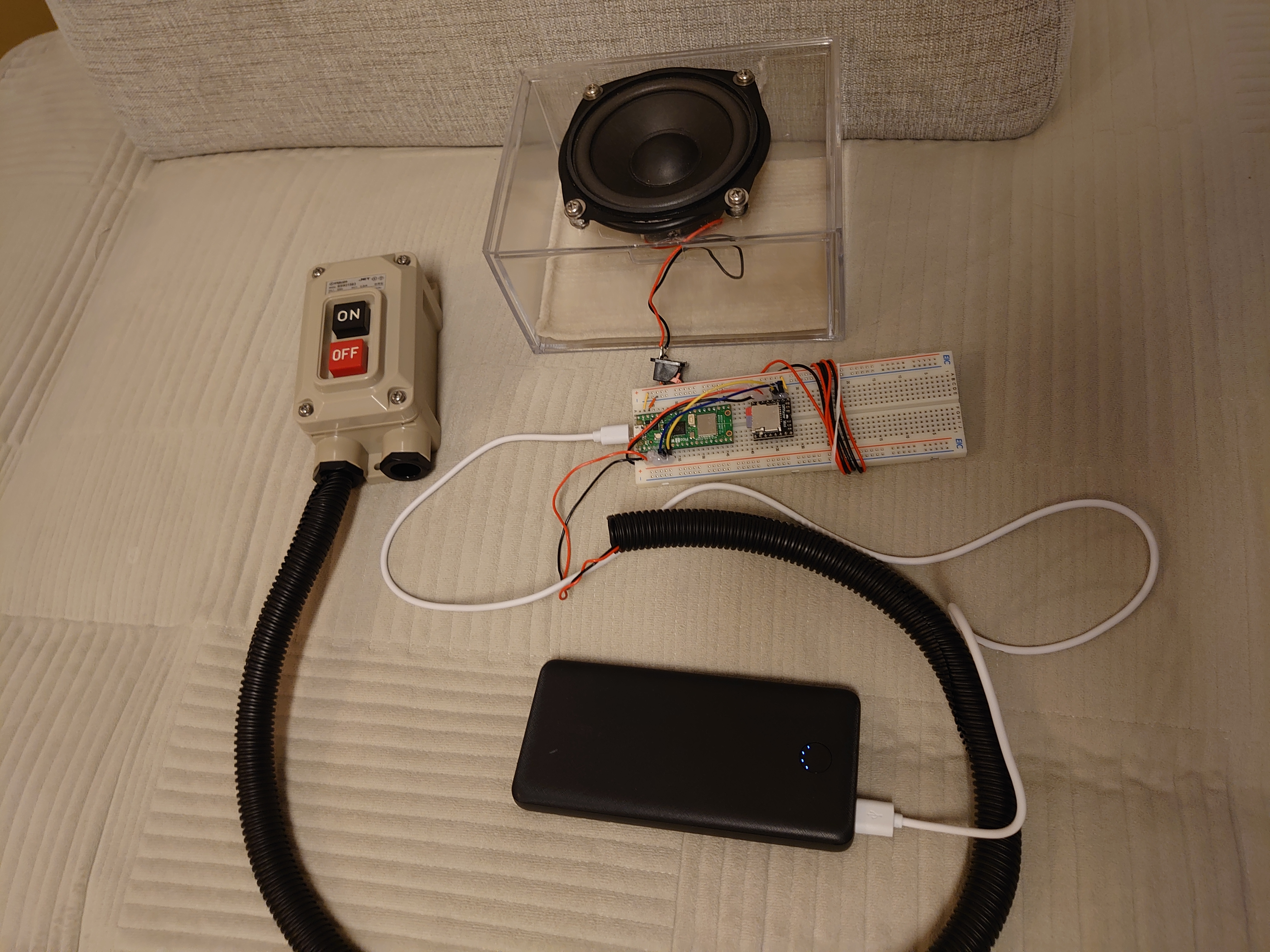 制御は Raspberry Pi Pico 2 W(MicroPython)、再生は DFPlayer mini と専用スピーカーです。