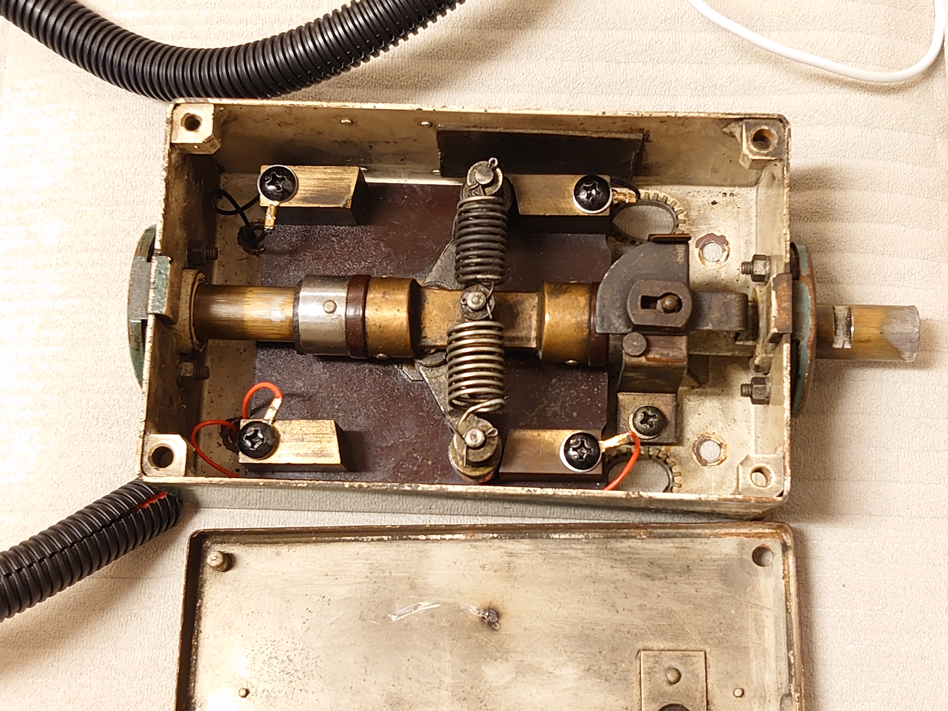 | 発車メロディスイッチ | 春日電機 BSW215B3 | レバーを下げるとON、戻すとOFF。ONの間だけメロディを流すきっかけを作る。 | 「押し下げ保持」なので実際の駅の感覚に近い。 |